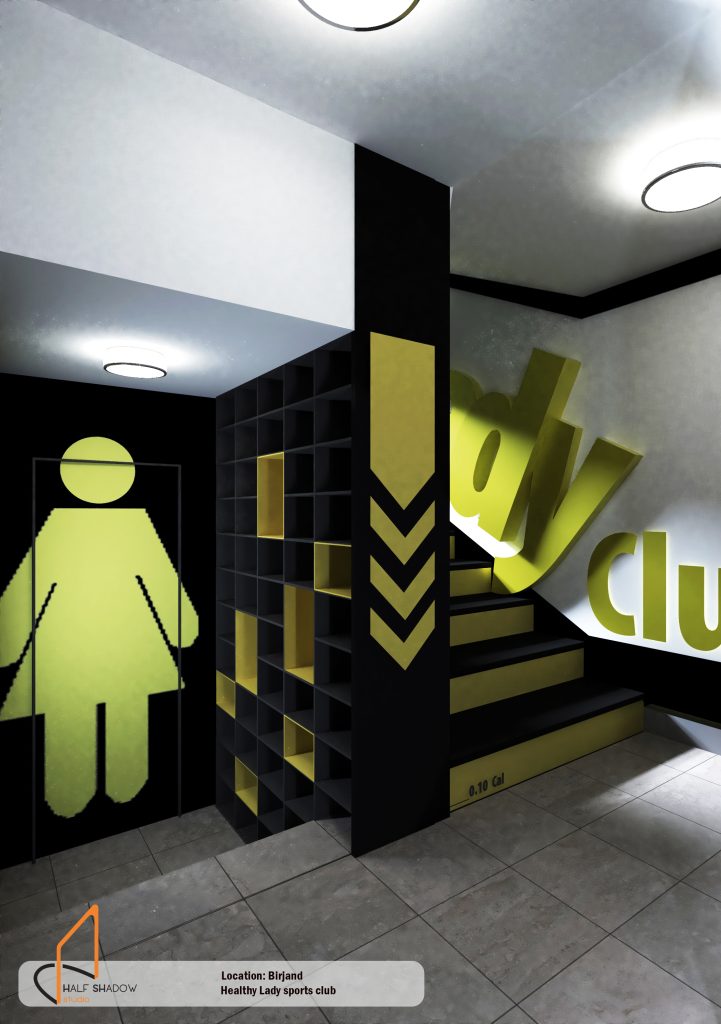 تیم ما در این طراحی از رنگ سازمانی باشگاه به همراه رنگ مشکی ، به عنوان دو رنگ اصلی در طراحی استفاده کردیم و بنا به خواسته ی کارفرما ایده های جدید و خلاقیت در ابداع طرح های خاص و غیر تکراری را در طراحی این فضا به کار بردیم. در طراحی به دلیل پایین آمدن هزینه ها از رنگ و استیکرها با طراحی خودمان برای جلوه دادن به فضای باشگاه استفاده کردیم.