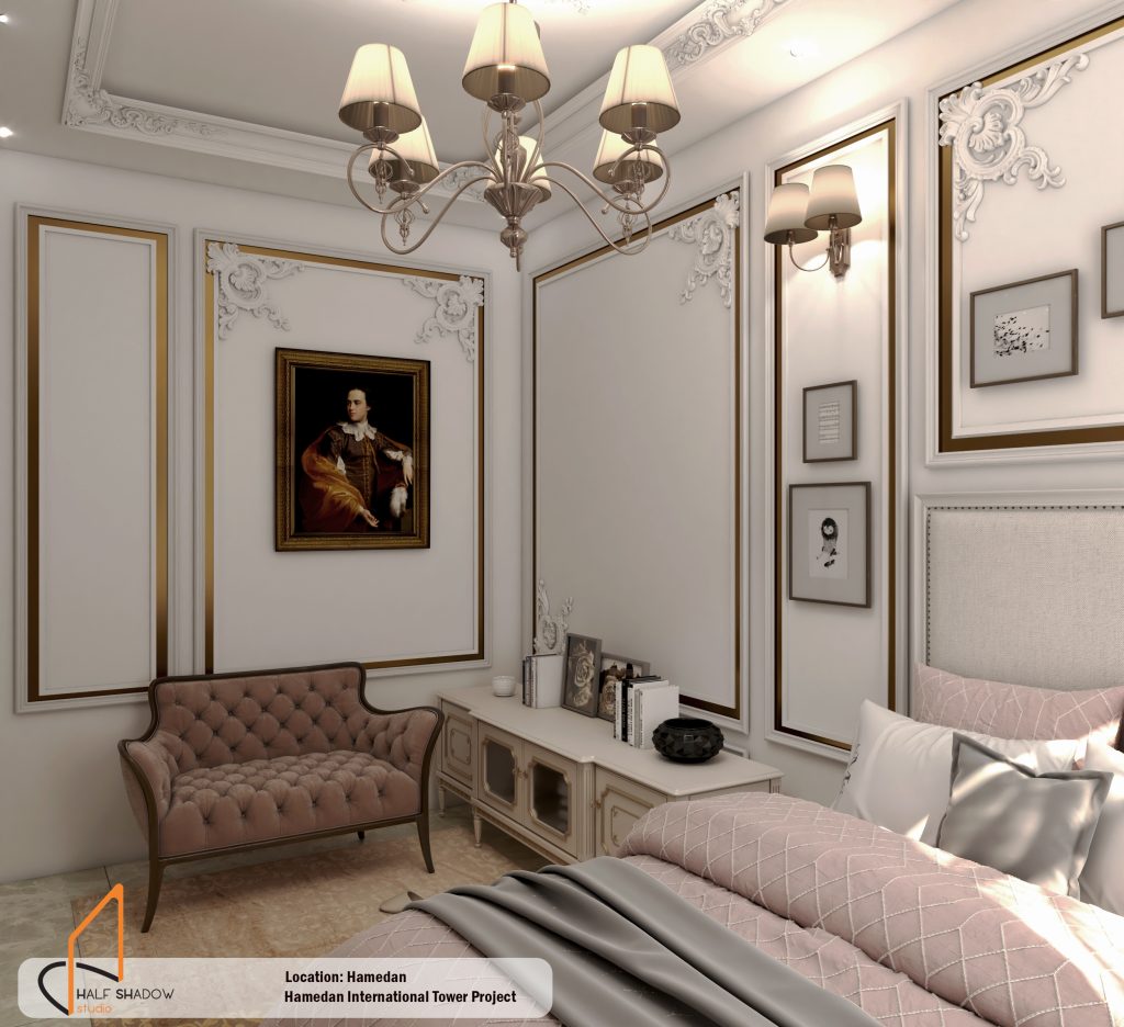 از نظر ما خانه در درجه اول به عنوان محلی برای آرامش، استراحت و تجدید روحیه است. در واقع فضای داخلی و چیدمان خانه در روحیه ساکنان آن بسیار تاثیر گذار است.از این رو اعمال کردن سلیقه ساکنان در انتخاب سبک طراحی و فرآیند طراحی بسیارمهم می باشد. فضای داخلی منزل باید به گونهای طراحی شده باشد که ضمن ایجاد آرامش دارای زیبایی و نظم خاصی در عین حال پیرو سبک خاص خود باشد. در فرآیند طراحی داخلی ساختمان مسکونی همدان سعی شد که تمامی موارد طراحی با توجه به تمایل کارفرما به سبک نئوکلاسیک در نظر گرفته شود. ازجمله اهداف ما درطراحی برقراری تعادل و توازن در تزئین و طراحی بخشهای مختلف منزل، داشتن هویت بصری چشم نواز و همچنین طراحی کاربردی و بدور از تکرار بوده است. در طراحی این واحد اولویت ها همراه با کاربردی بودن آن در کنار استفاده از چهارچوب مشخص استفاده از جزییات و در بخش هایی استفاده از سادگی به عنوان مهم ترین ایده آورده شده است.